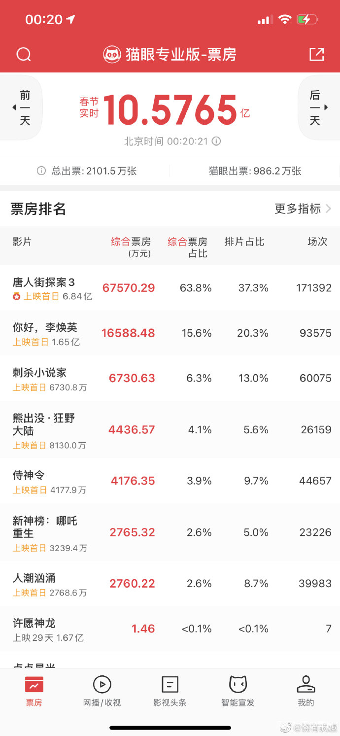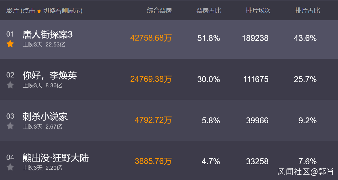 上映當天,排片8.7%,票房2769萬。