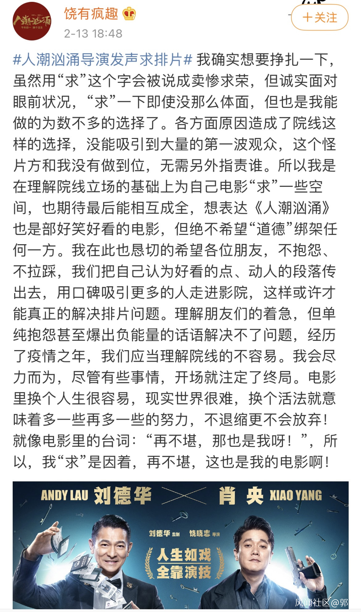 《人潮洶湧》導演發聲求排片:雖然不體面但沒得選_風聞