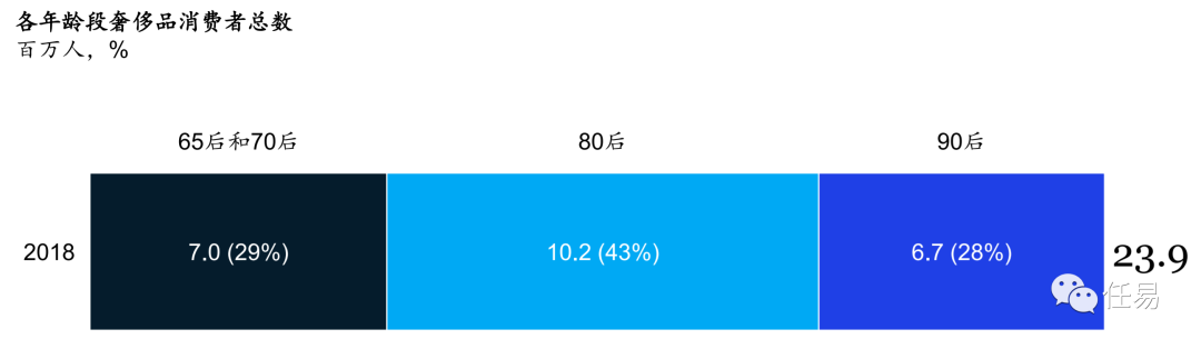 2018年,中國人口普查總人口133972萬人,而奢侈品的中國消費者總數達到2390萬人,佔比1.78%;對於80/90一代,奢侈品消費者總數為1020萬人,而80/90人數為42393萬人,佔比2.4%,從這個比例來看,擁有奢侈品的年輕人,的確可以證明自己屬於Top 2.4%的「有錢人」範圍。