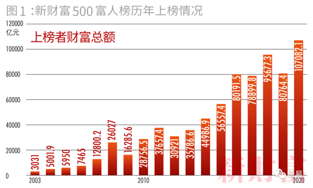 按照最低價計算,這些家庭至少擁有11.6萬億美元的財富;但事實上遠不止這些,因為僅僅是新財富上500位頭部的富人,他們的資產總額就已經達到10.7萬億元。而2019年,中國的百億級富人,就已經達到了315人。
