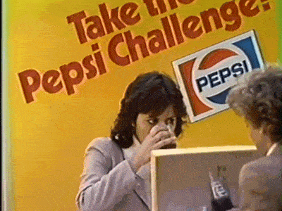 他們會在街頭支起場子,在桌子上擺兩個完全一樣的杯子,一杯裝着可口可樂,一杯裝着百事可樂,然後邀請路人來品嚐,讓他們僅憑味道選出兩杯可樂中最喜歡的一個,最終答案揭曉,多數人都選擇了百事可樂。