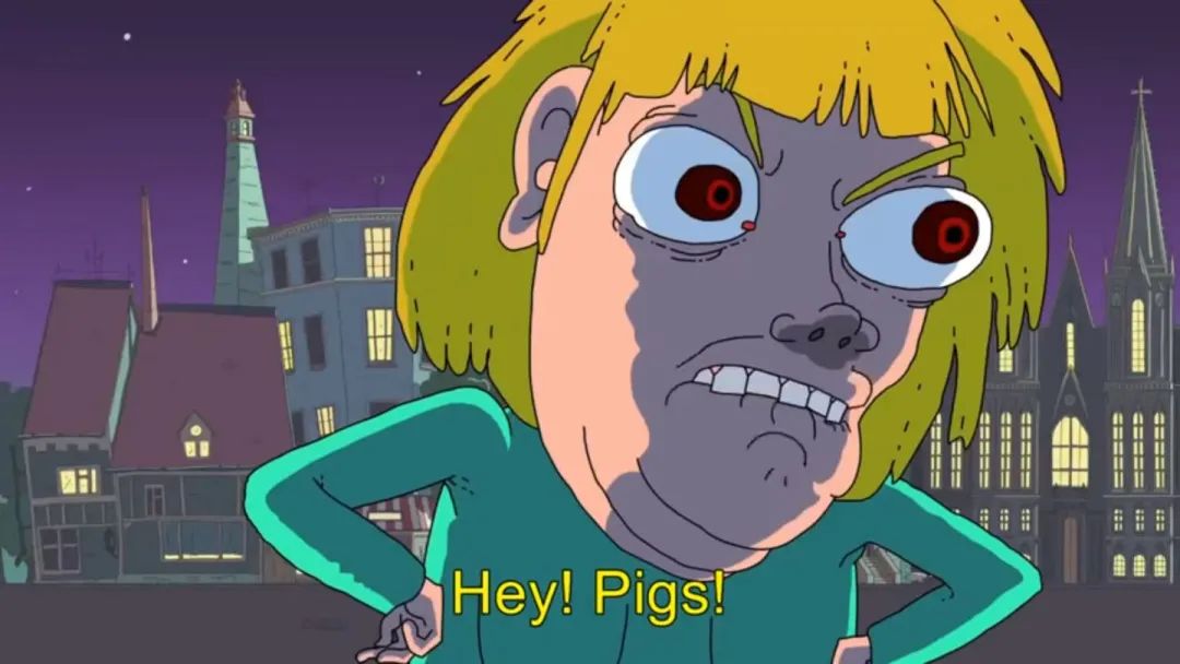 然後又對被丟石頭的兩人叫道:“Hey,豬們!”