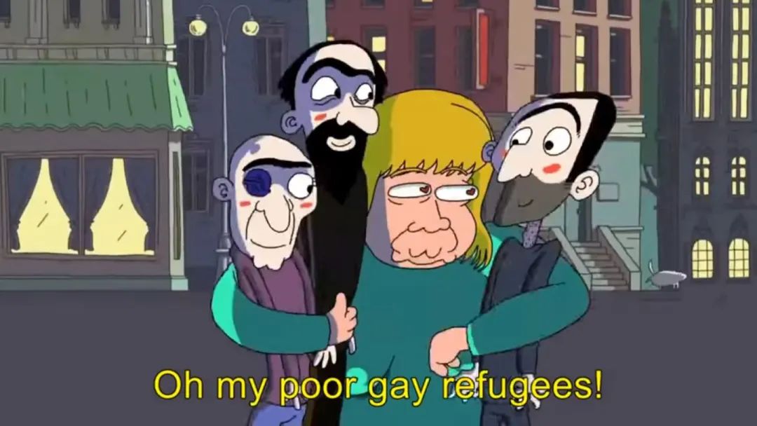 “啊我可憐的同性戀難民!你們受了太多的苦,你的痛苦就是我的痛苦!”