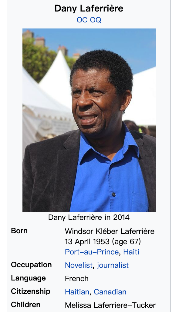 有一位文學課老師,説他接下來要講的作品,來自法蘭西院士、海地裔魁北克作家拉菲裏耶爾,名字叫《Comment faire l’amour avec un nègre sans se fatiguer》,翻譯過來的意思是《如何不知疲憊地和一位黑鬼做愛》。