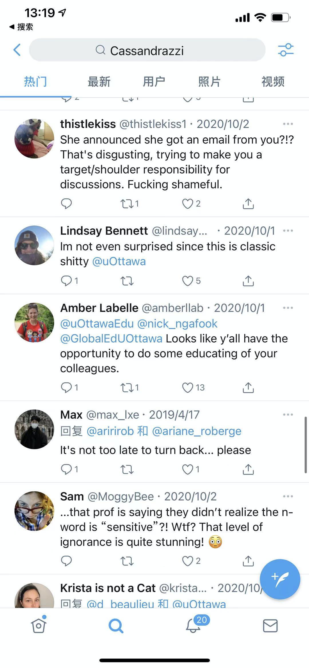 然而為時已晚,這名同學還是把她和Duval的郵件溝通記錄發到了網上,並且配文@了渥太華大學的官方推特,要求大學管好他們的教授,不要再説N-Words了。同時還公佈了老師的姓名、電子郵件和地址。