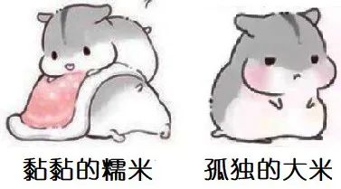 大米中澱粉 25%-30%是直鏈澱粉,70%-75% 是支鏈澱粉;而**糯米中絕大多數澱粉都是支鏈澱粉,**自然而然糯米食品會比大米食品更黏一些。