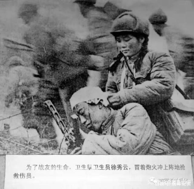 夜幕降臨,傷員逐漸增多,我們留守的幾個同志成立了臨時護理隊,我是負責人,隊員有:兩名男兵,一位炊事員,一位衞生員;加上我還有8名女宣傳隊員,堅白是小提琴手,劉宏英是拉二胡的,吳厚智、張友松是跳舞的,丁永玲、吳徵和我是唱歌演戲劇的,春鍾皋(滿族)是搞舞美的。我們當中最大的20歲,最小的16歲,女兵中除了我多次護理過傷員外,其她女兵都是第一次。我們在646.2高地的北坡幾間臨時的防空洞,成立了救護傷員的中轉站。當時,我們並不知道要在此堅守三天三夜,給我們的人生留下了難忘的一段經歷。