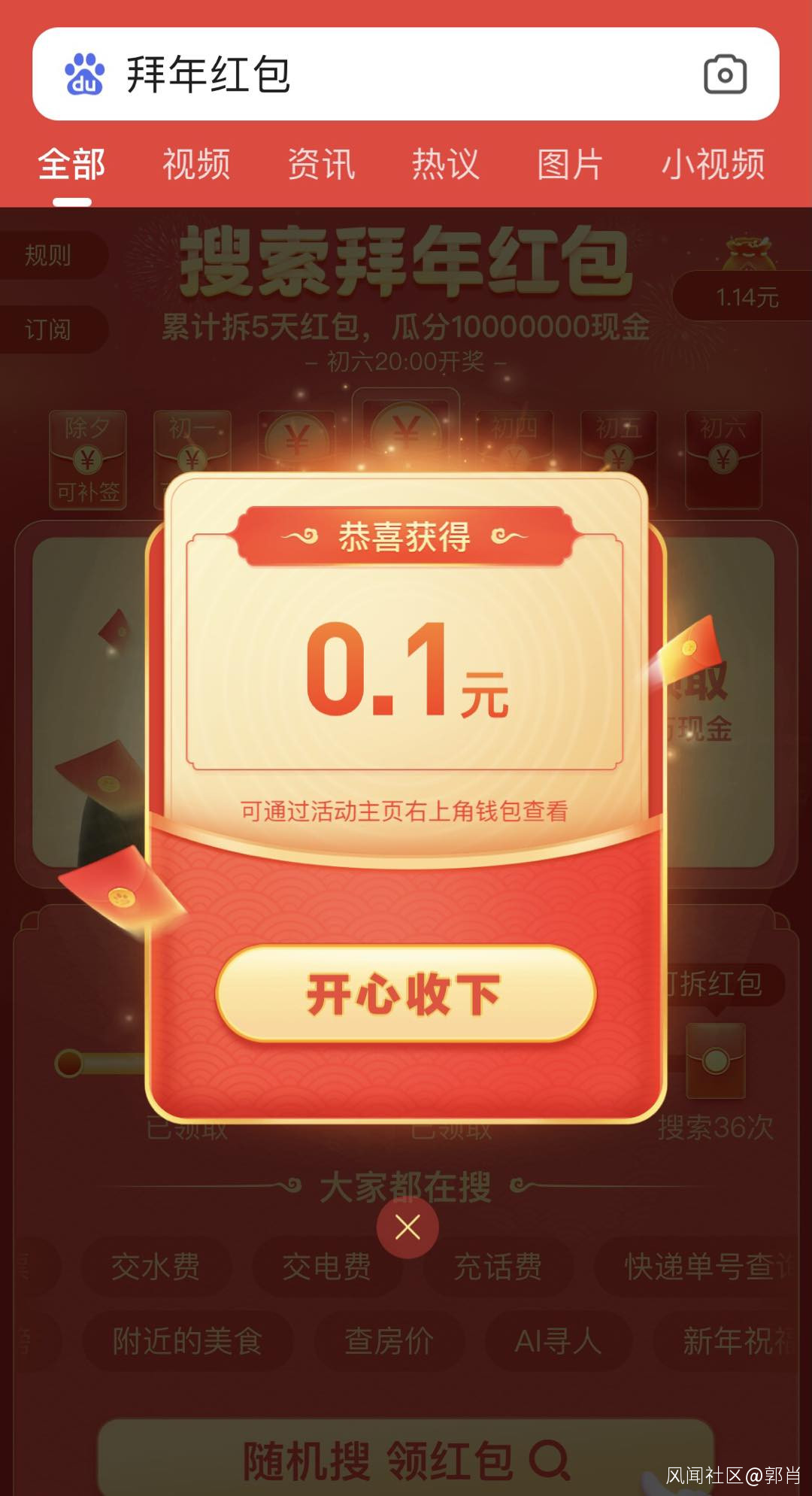 圖説:在完成搜索18次的任務後,解鎖了1毛紅包