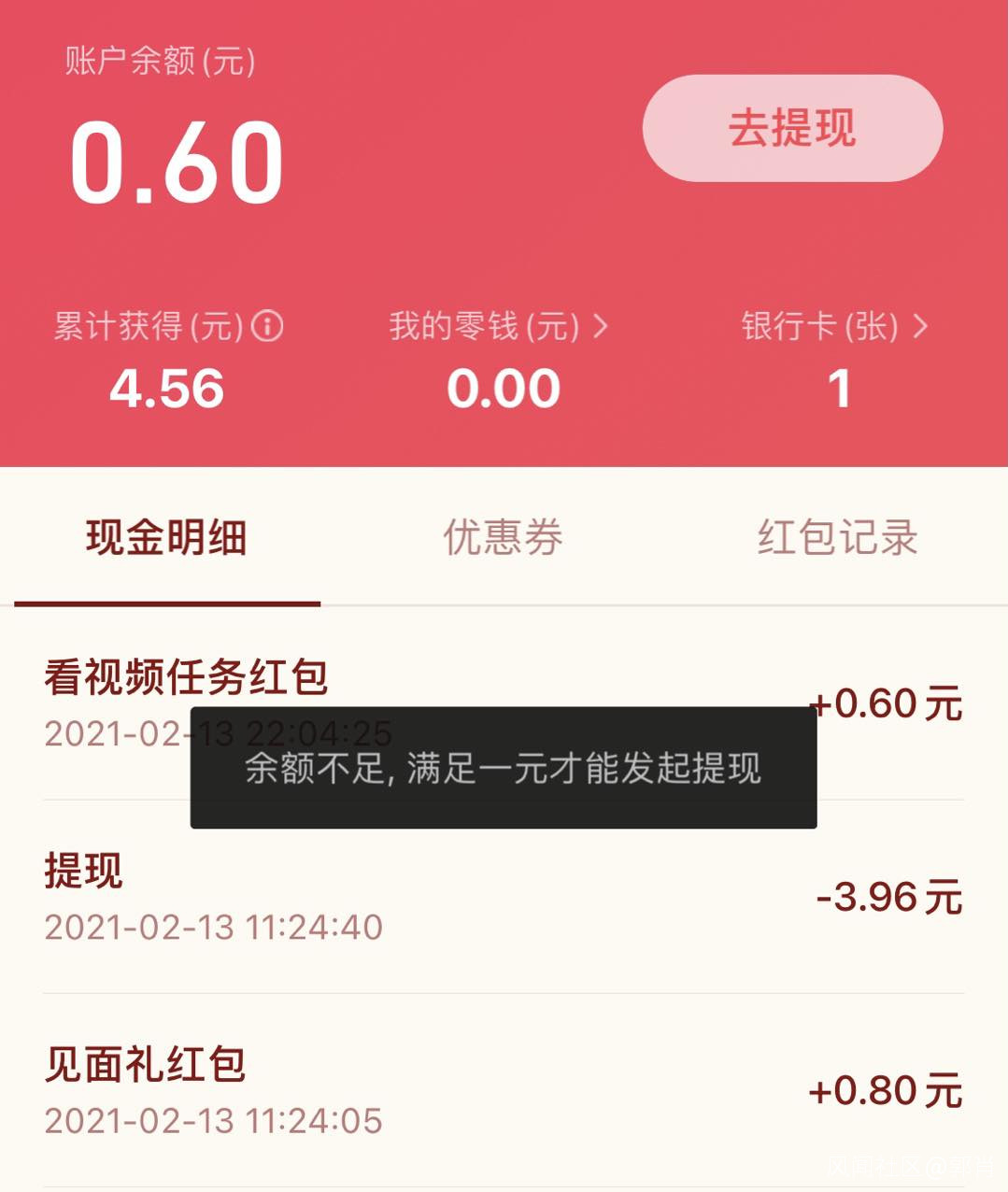 澎湃新聞記者注意到,春晚搶到的抖音紅包可提現至“零錢”,提現門檻1元,再從“零錢”提現至綁定的銀行卡。該流程可鼓勵未在抖音綁定卡的用户進行首次綁定,這對抖音的支付業務多有裨益。