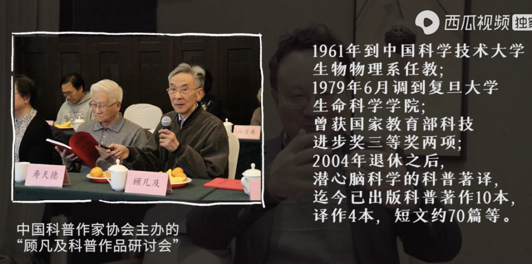 袁嵐峯:大家好,我是科技袁人袁嵐峯。今天我非常榮幸地向大家介紹一位我的前輩朋友,腦科學家,著名的科普作家,復旦大學退休教授顧凡及老師。就近年來,我是注意到有不少這個腦科學的文章,然後最後都發現他這個作者啊,都是來自於顧凡及老師。