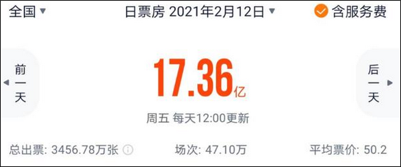 而燈塔專業版數據顯示,2021年正月初一的票房達17.36億元,再次刷新記錄,同比漲幅達20.3%。