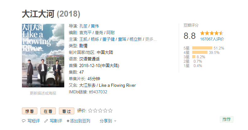 看過電視劇《大江大河》的都知道,劇情非常精彩,這一點從豆瓣評分上可以看出來,畢竟羣眾的眼睛是雪亮的。