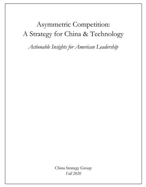 最近,谷歌前CEO埃裏克·施密特(Eric Schmidt)(圖1)領導的智庫“中國戰略組”(China Strategy Group,CSG)發佈了一個報告,題為《非對稱競爭:應對中國科技競爭的戰略》(圖2)。我之所以認為這份報告值得向公眾介紹,是因為它的分析十分深入。在此基礎上,它的不少政策建議簡直稱得上“毒辣”。