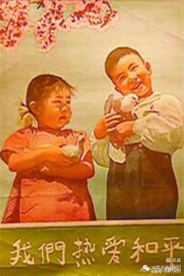 1951年10月25日,我軍各部隊召開了入朝作戰一週年紀念大會,祖國各界人民的慰問信紛至沓來,在當時印象最深的是一對男女兒童抱着和平鴿,標題“我們熱愛和平" 那幅宣傳張貼畫,引發了我的遐想,渴望過上和平生活後結婚成家,只生一男一女像他們一樣幸福漂亮的孩子,我把張貼畫剪了下來,帶在心房前的上衣口袋內。