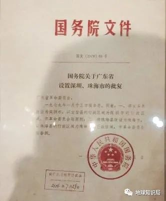 《關於廣東省設置深圳、珠海市的批覆》文件原件