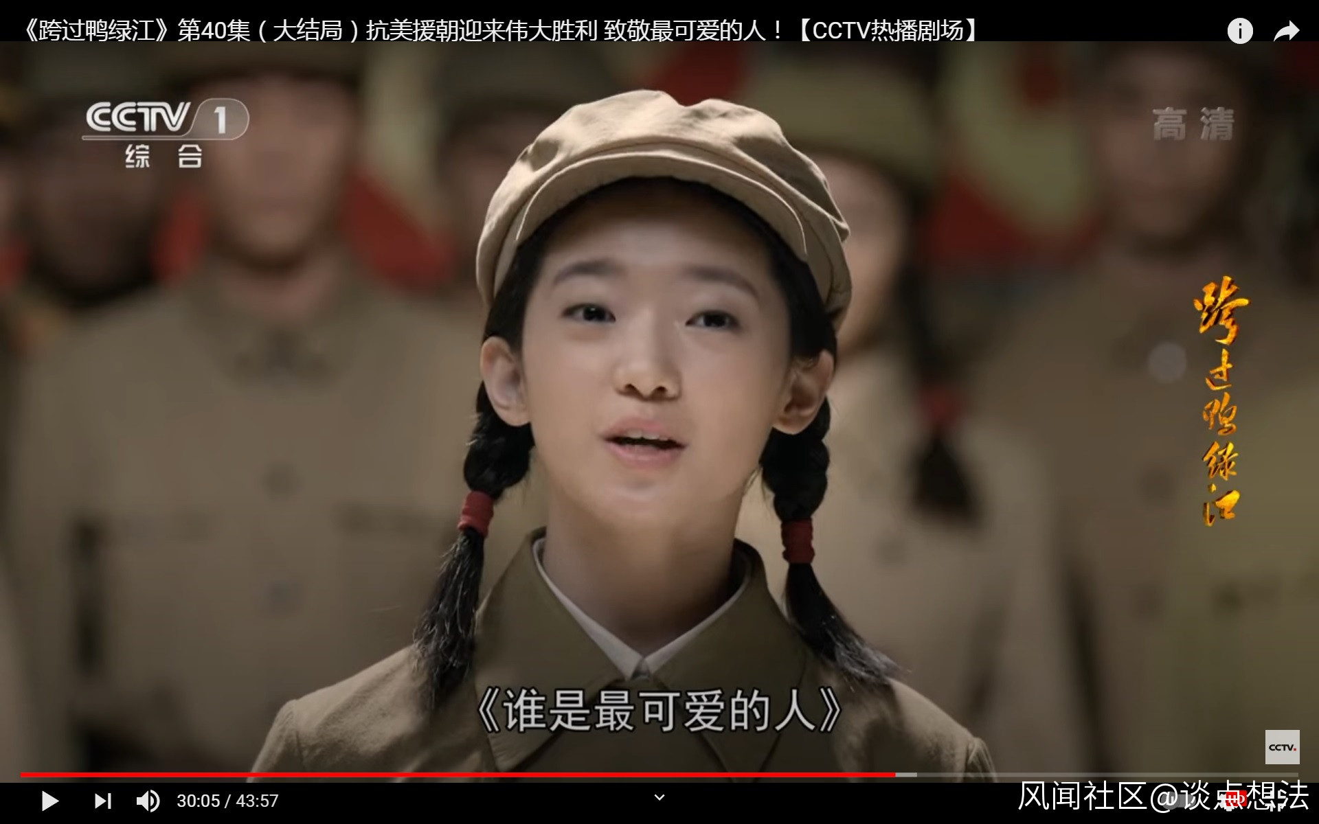 我覺得第40集中小文工團員的散文朗誦《誰是最可愛的人》是最感人的一幕,也是全劇的總結。這一幕沒有政治和道德的説教,沒有豪言壯語,只有普通老百姓都能夠感受的的肺腑之言。《誰是最可愛的人》是作家魏巍從朝鮮戰場歸來後所寫的一篇報告文學,不少人在中學語文課本中學過。今天作為電視劇《跨過鴨綠江》的點睛之處,非常經典。下面全文轉發此文,有興趣的朋友可重新閲讀一下,在觀看了激動人心的劇情以後再次感受那深邃的偉大。