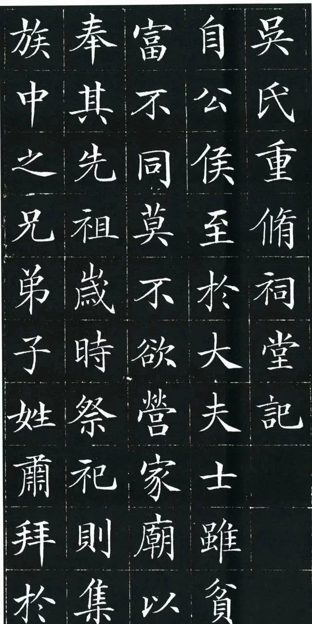 大圖模式?《吳氏重修草堂記》是一個序文,可以看出這個縣委書記寫字認真,筆法嚴謹,精工秀雅,形瘦實腴,一絲不苟,毫無敗筆,雖有歐楷根底,又有柳楷瘦硬,加上魏碑的欹側險勁,頗有拙趣。