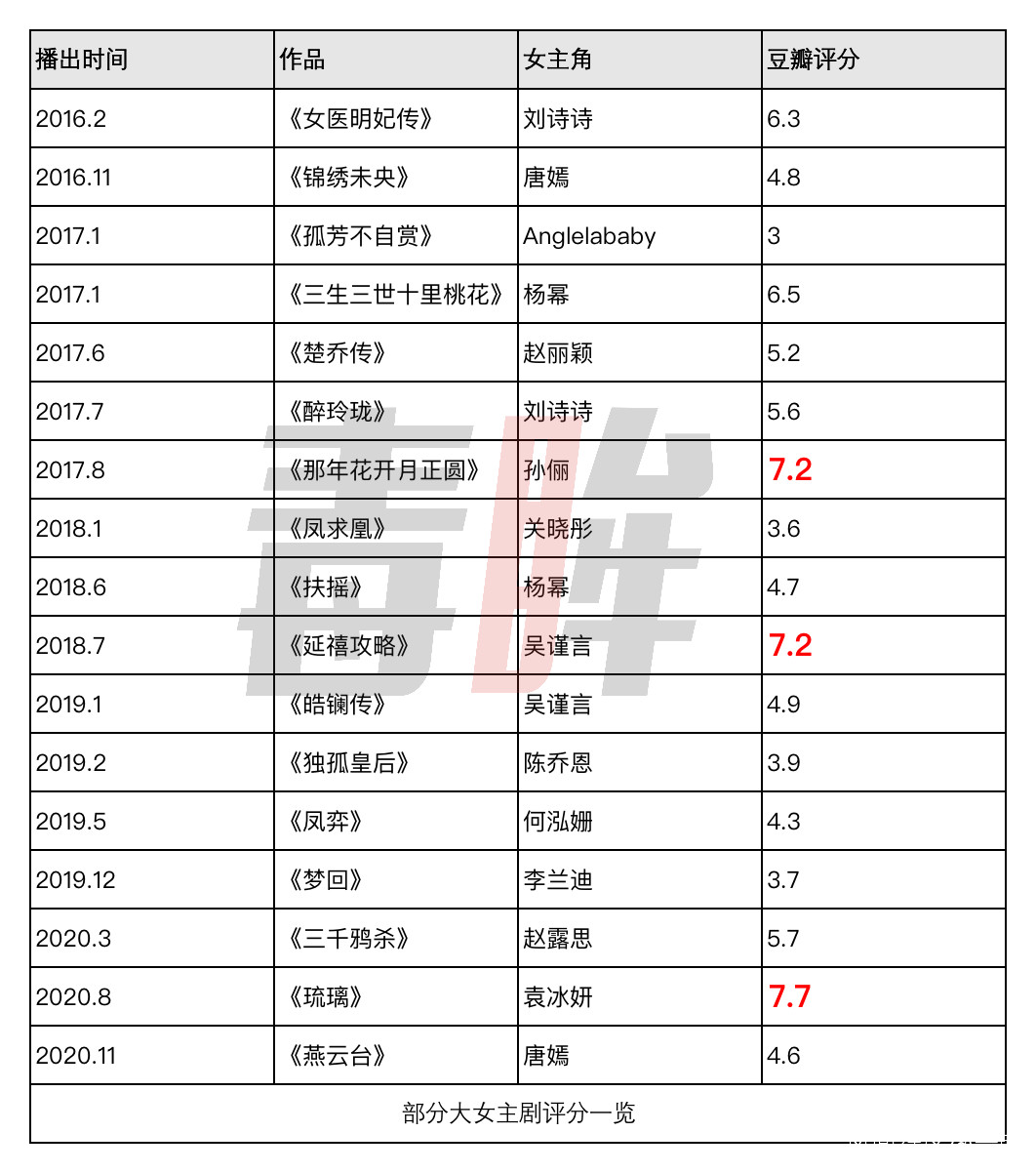 因此,當視頻網站進化到自制階段,大IP也就完成了自己的歷史使命。而作為IP戰略的裏排頭兵,大女主們自然也該乖巧退下。畢竟,那些年裏,大女主們只顧着談戀愛和靠男人打天下,着實沒給觀眾留下什麼——除了幾百億的流量水分。