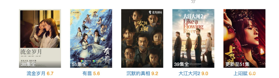 和豪華配置形成反差的是,這些劇集少有超出7分的成績,在一個國產劇整體通貨膨脹的時代,這個得分只能説不佳。