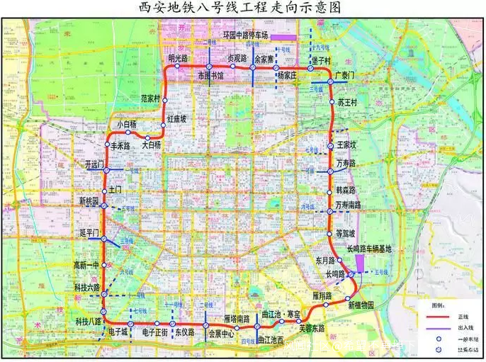 據@陝視新聞 17日報道,西安地鐵八號線是目前西安市地鐵線網規劃中的唯一一條環線,共設車站37座,全長約50公里,將成為中國首條成環運營的無人駕駛智慧地鐵,建設年限為2019—2025年。