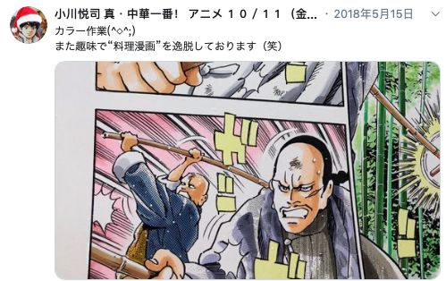 小川悦司發推:又因為(功夫電影的)興趣偏離美食漫畫了(笑)