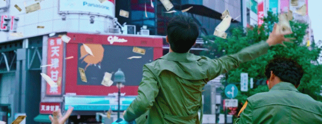 東京最繁華街道澀谷十字路口的“撒錢”戲份,街頭熱鬧的民俗巡遊活動盂蘭盆節,眾多的參演者烘托出了影片的大片氛圍;