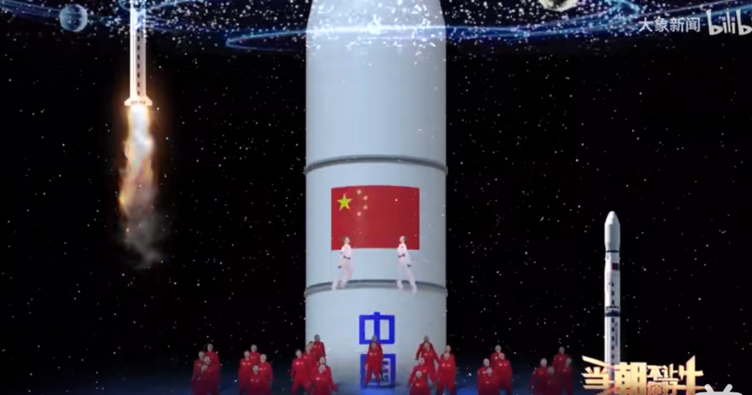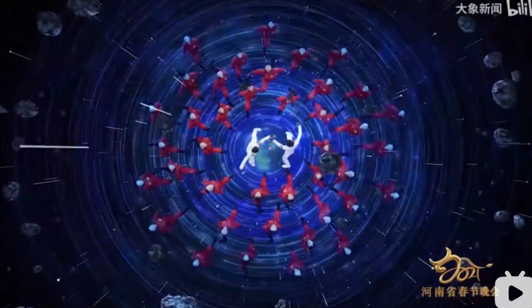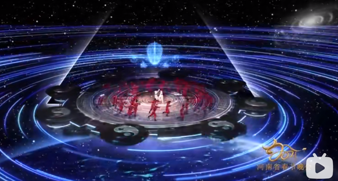 簡單再説幾個個,比如武術表演《天地之中》,沒有拘泥於傳統的武術套路表演,而是武術演員置身於星空河漢之中,打的不是傳統太極,而是科幻太極,背景不是山水古韻,而是星漢燦爛、長征火箭、神州飛船,非常具有想象力。