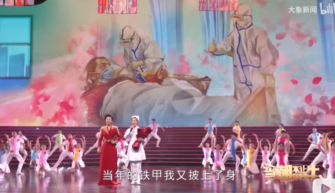 堂堂正正,氣貫長虹的表演,不煽情,不編故事,直口真心,一氣呵成,借的是穆桂英的戲曲,説的是2020年大中國中流砥柱當代英雄的事!你説,這白甲戰士抗擊疫情的故事,早已寫在天地間,寫在人心裏,用老祖宗的藝術直抒胸臆、大大方方唱出來,就是崑山玉碎、鳳凰長鳴、驚天地泣鬼神,又何必搞什麼小品演繹呢?