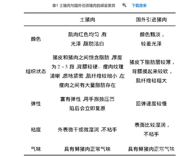 資料來源:餘羣蓮等著《土豬和國外引進豬肉質性狀差異》,《肉類工業》 2014年第9期