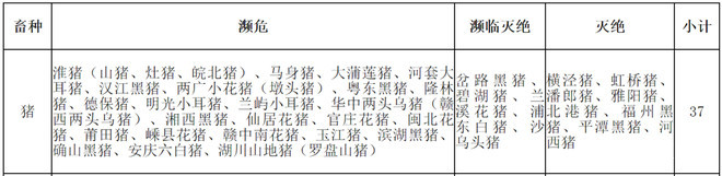 瀕臨滅絕更嚴重,是指繁殖母畜(也就是母豬)總數量低於100頭(只)或繁殖公畜(種豬)低於5頭(只);種羣數量(現在的養殖數量)低於1000頭(只),且呈現減少趨勢。