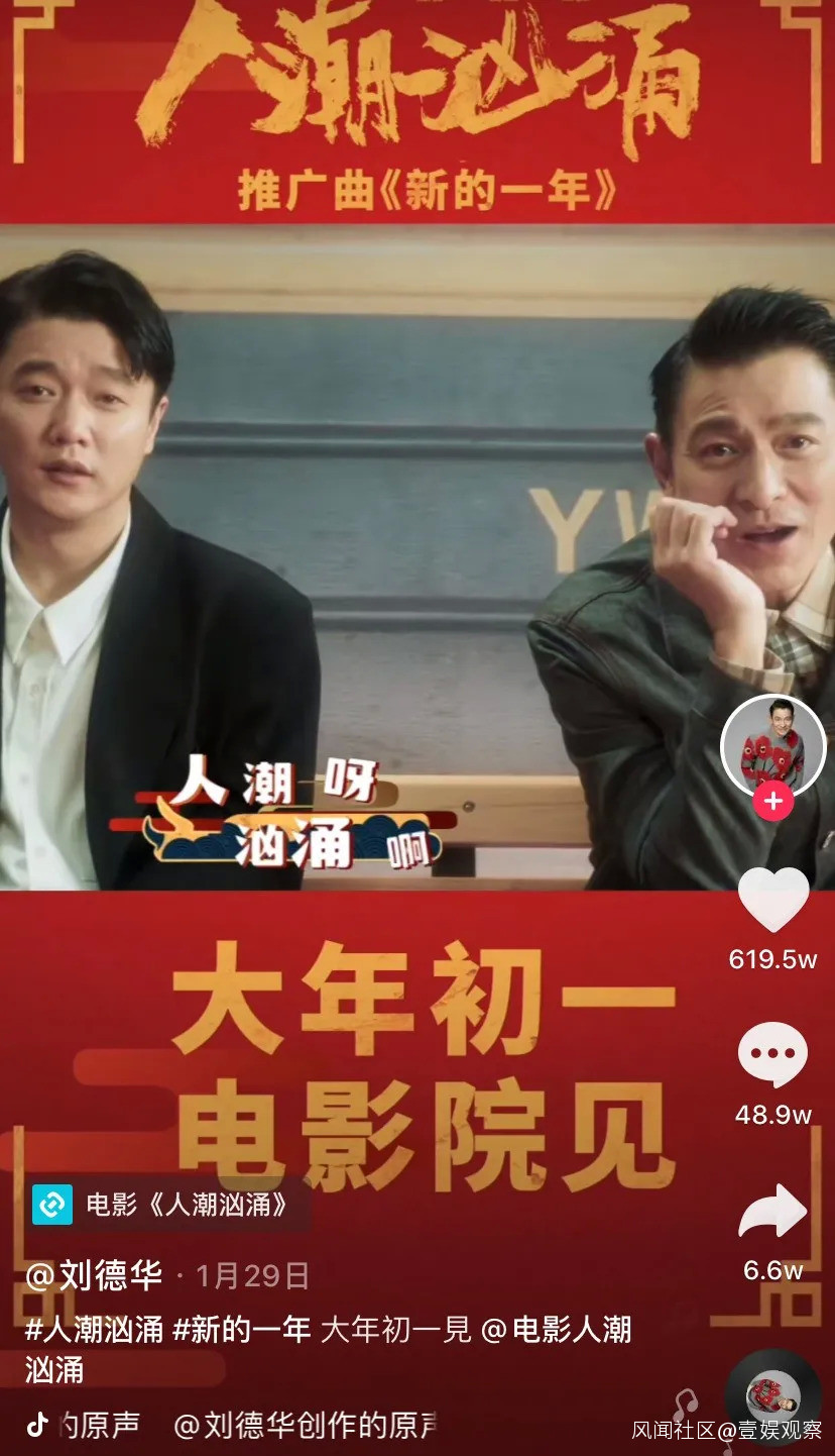劉德華入駐抖音發佈推廣曲宣傳《人潮洶湧》