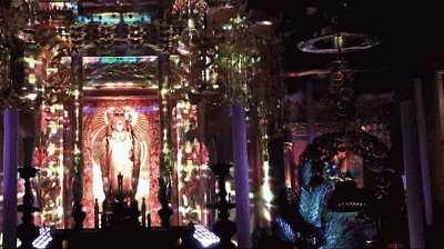 他嘗試把經文變成高科技舞曲,用電腦合成器做出特殊音效,將軟件做出的酷炫影像投在佛像上,而光線隨着佛經的唱詞,不斷變化。