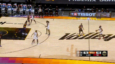 太陽也終於在外線多次嘗試失敗後,把重心改為找艾頓,但一來改策略有點晚了,二來籃網小陣容伸縮性不錯,對艾頓的處理球要求也有點高。