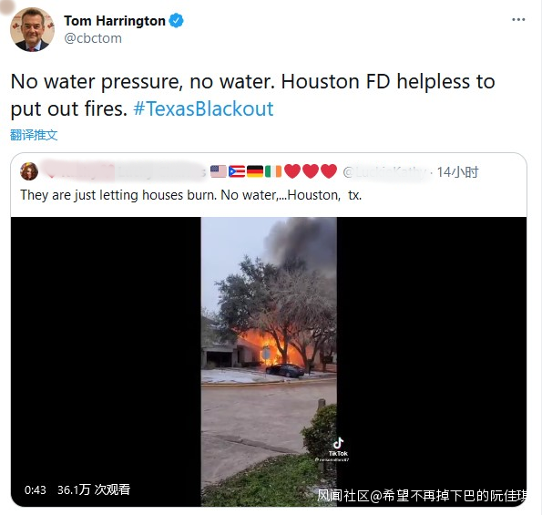 冷得沒法的得州人烤火取暖把房子點了,結果沒水…_風聞