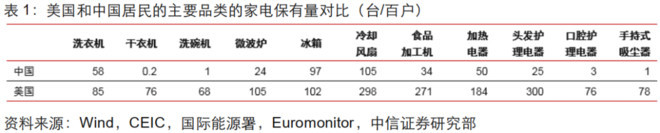 從上圖可以看出,除了洗衣機、冰箱這兩個常用家電外,中國人的家電保留量遠低於美國人。