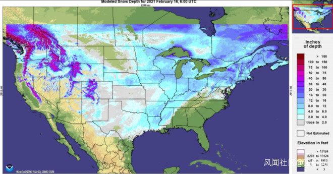 美國本土積雪狀況 圖片來源:美國國家氣象局