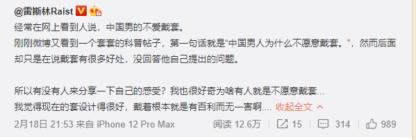 昨天微博上看了一個科普,上面第一句就是“中國男人為什麼不愛戴套?”