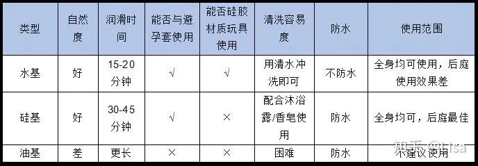 現在套的潤滑分為水基、油基和硅基三種。油基因為不溶於水,所以比較能保持持久潤滑,而水基則體驗會比較好,不會有異樣的感覺。