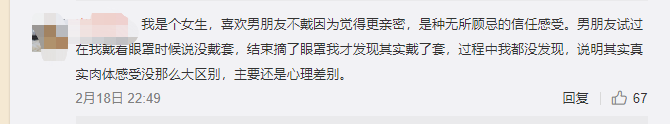 接下來,是一些女生反映,説用套套沒有肌膚相親的感覺。一些男生表示用套沒感覺,不刺激。