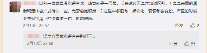 所以如果你覺得套用起來會有怪怪的刺激感,可以試試上面寫着“玻尿酸”的套套,那種一般都是水基的。