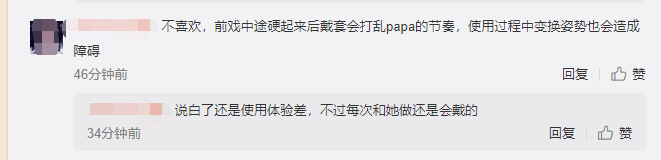 此外,和男生一樣,也有很多人表示戴套的那個行為,會破壞整個DOI過程的完整性,破壞好不容易積攢起來的氣氛。