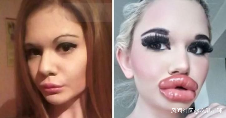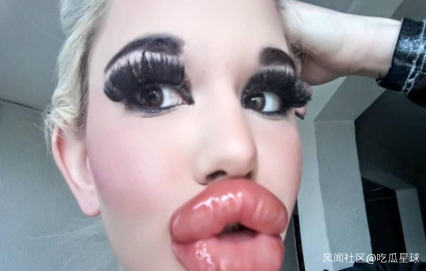 她的嘴唇比最開始的狀態已經大了四倍多,但作為人間芭比,審美當然會與大眾什麼有點出入。