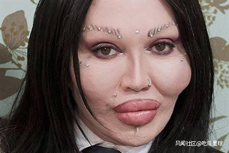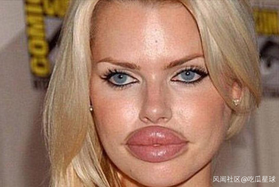 最近她又接受了一次手術,這時她的嘴唇裏已經整整注射了20次透明質酸。豐唇效果比動畫特效的香腸熱狗嘴還要吸引人。