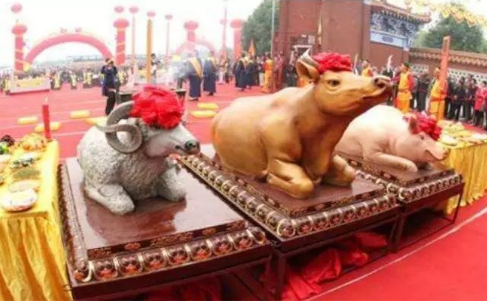 “國之大事,在祀與戎”——《左傳》。在古人看來,能夠當得起國家大事的只有祭祀和戰爭兩類,祭祀甚至還重於戰爭。古人特別重視祭祀,關於祭祀有一整套完整的制度規定。《禮記·曲禮》記載:“凡祭宗廟之禮:牛曰一元大武,豕曰剛鬣,豚曰腯肥,羊曰柔毛,雞曰翰音,犬曰羹獻,雉曰疏趾,兔曰明視……”古人祭祀所用牲畜統稱為“犧牲”,色純為“犧”,體全為“牲”。在祭祀用動物中,牛居首位。