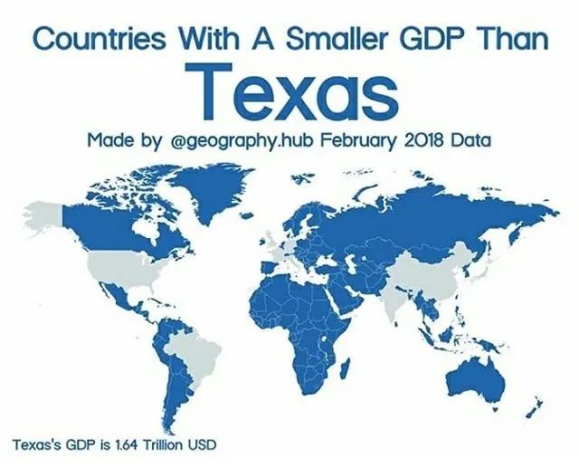 假如自成一家,得州的GDP總量能排在世界第十,比加拿大還要高。