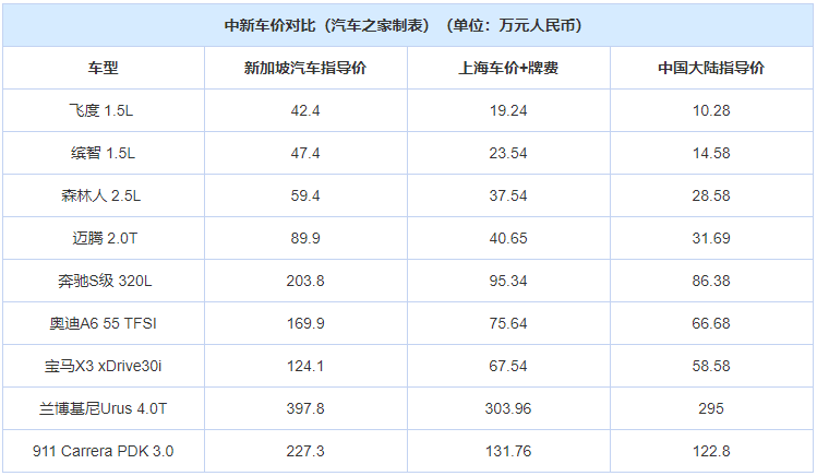 ▲ 中國和新加坡車價對比。圖片來源:汽車之家