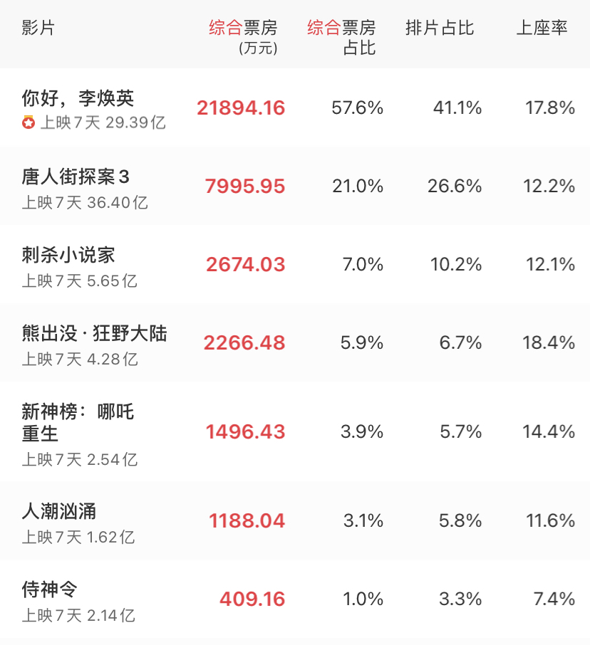 還有一部就是小妹今天要説的,上映後一路低走,日票房、排片、上座率均****已墊底,