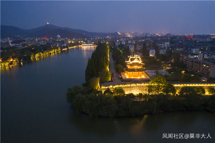 (圖片源自新華社謝劍飛於****4月29日拍攝的襄陽古城牆和護城河夜景的無人機照片)