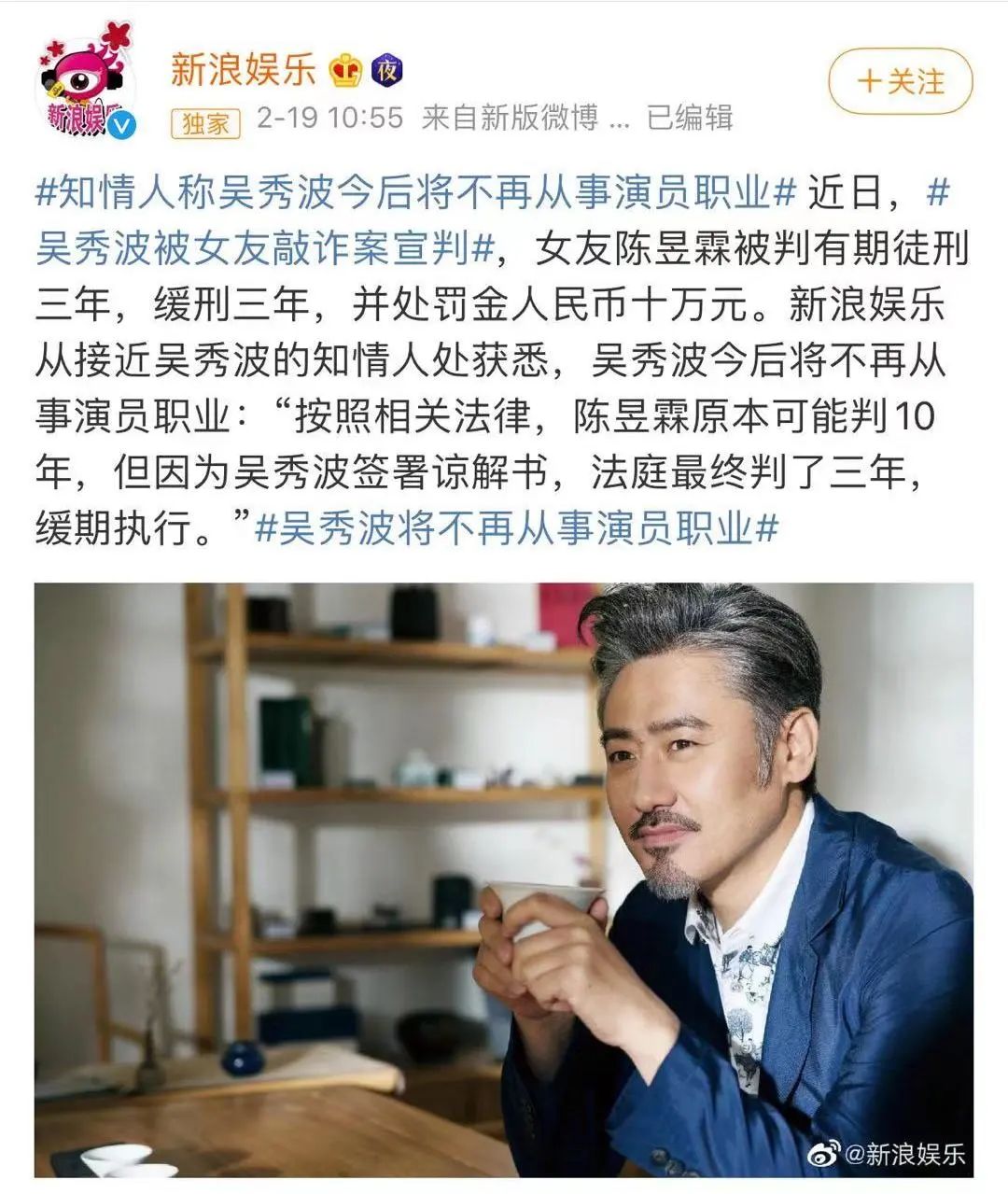 據知情人士透露,吳秀波將不再從事演員職業,同時,被吳秀波告敲詐的當年女友陳昱霖也出獄了…