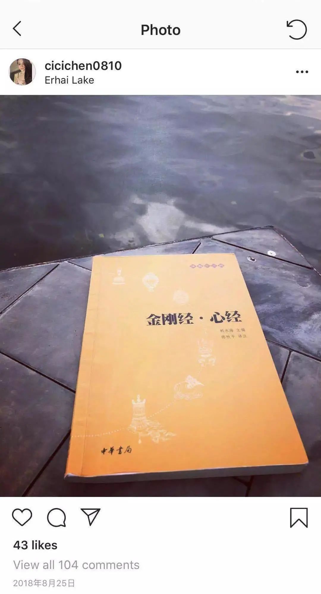 當然了,INS上也有曬出吳秀波給她洗腦的《金剛經》。